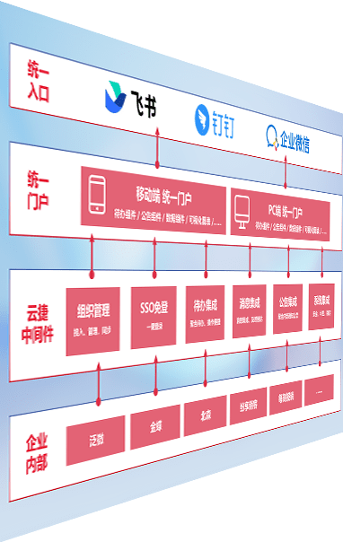 对协作平台提供支持服务,,,,支持企业应用与协作平台对接,,,,包含组织同步、、消息集成、、待办集成等。。。。支持目前主流的协作平台:钉钉、、、、企微和飞书。。。。
